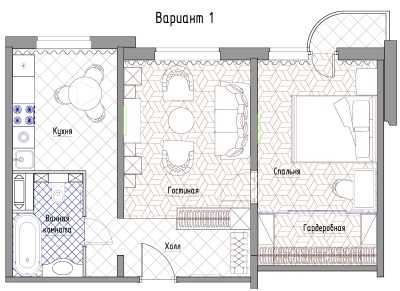 Вариант 2. Перепланировка 3-комнатной квартиры. Объединяем кухню и гостиную.