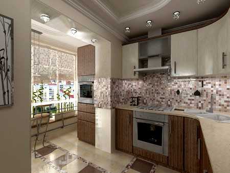 Кухню проще всего присоединить к гостиной. Полученное пространство выйдет весьма обширным, но газовую плиту придется заменить на электрическую, в целях соблюдения норм пожарной безопасности.