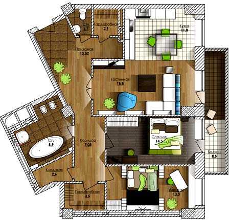 Варианты и примеры перепланировок 3-х комнатных квартир