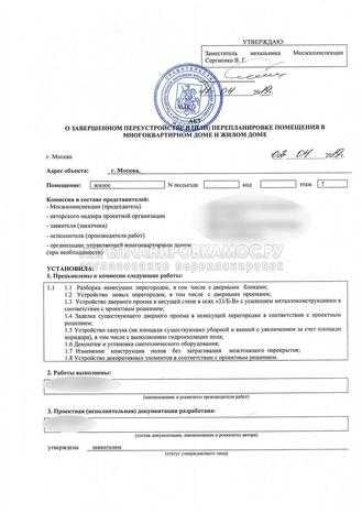 - согласование специальным архитектурным управлением вместе с автором проекта об перепланировке;