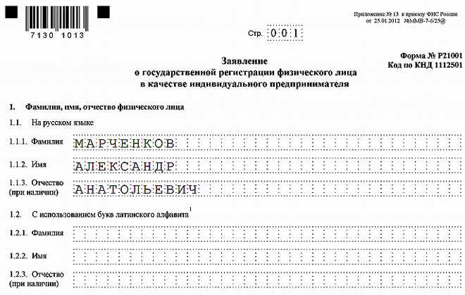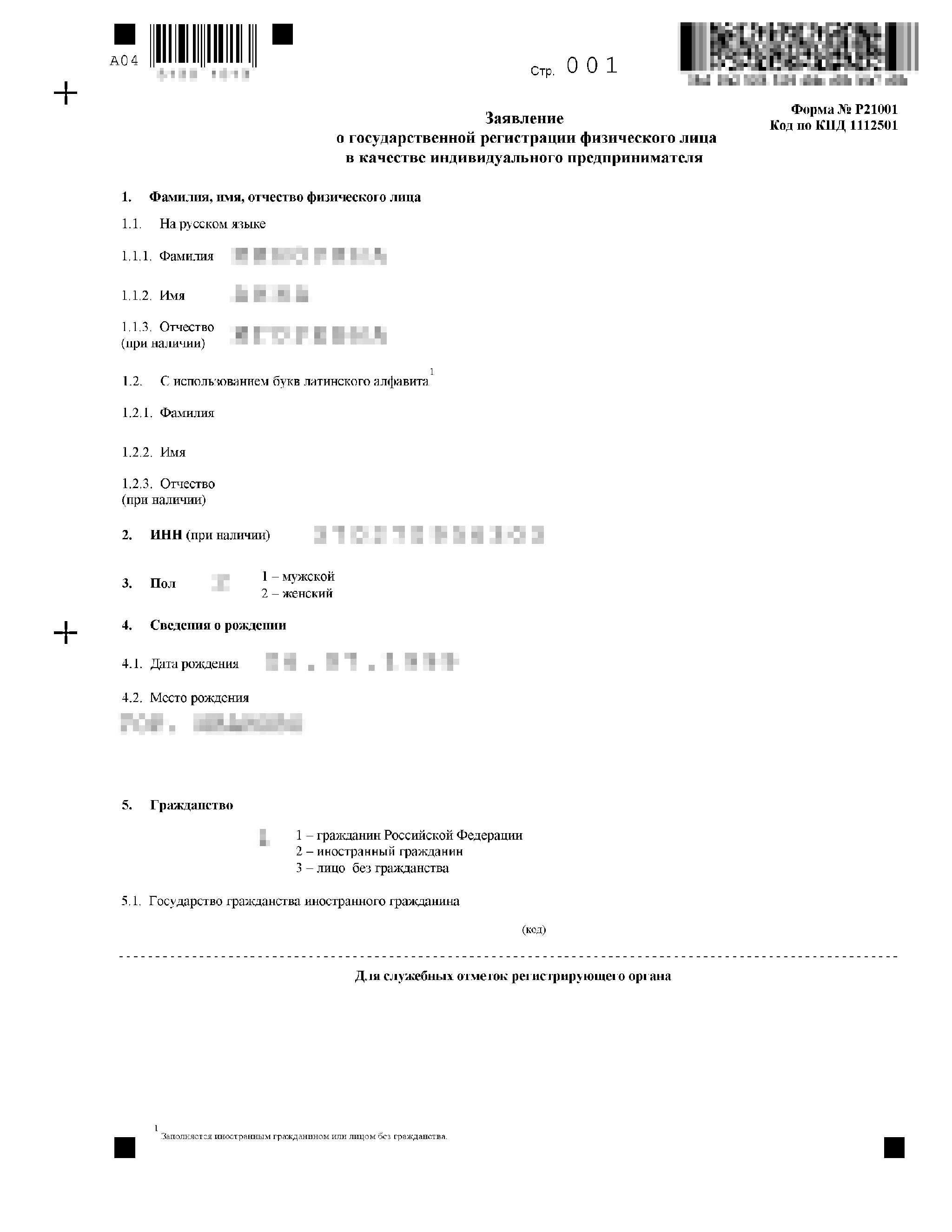 Основным является заявление по форме P21001. В нем содержится исчерпывающая информация личного характера о будущем индивидуальном предпринимателе и о том, какой деятельностью в дальнейшем он планирует заниматься.