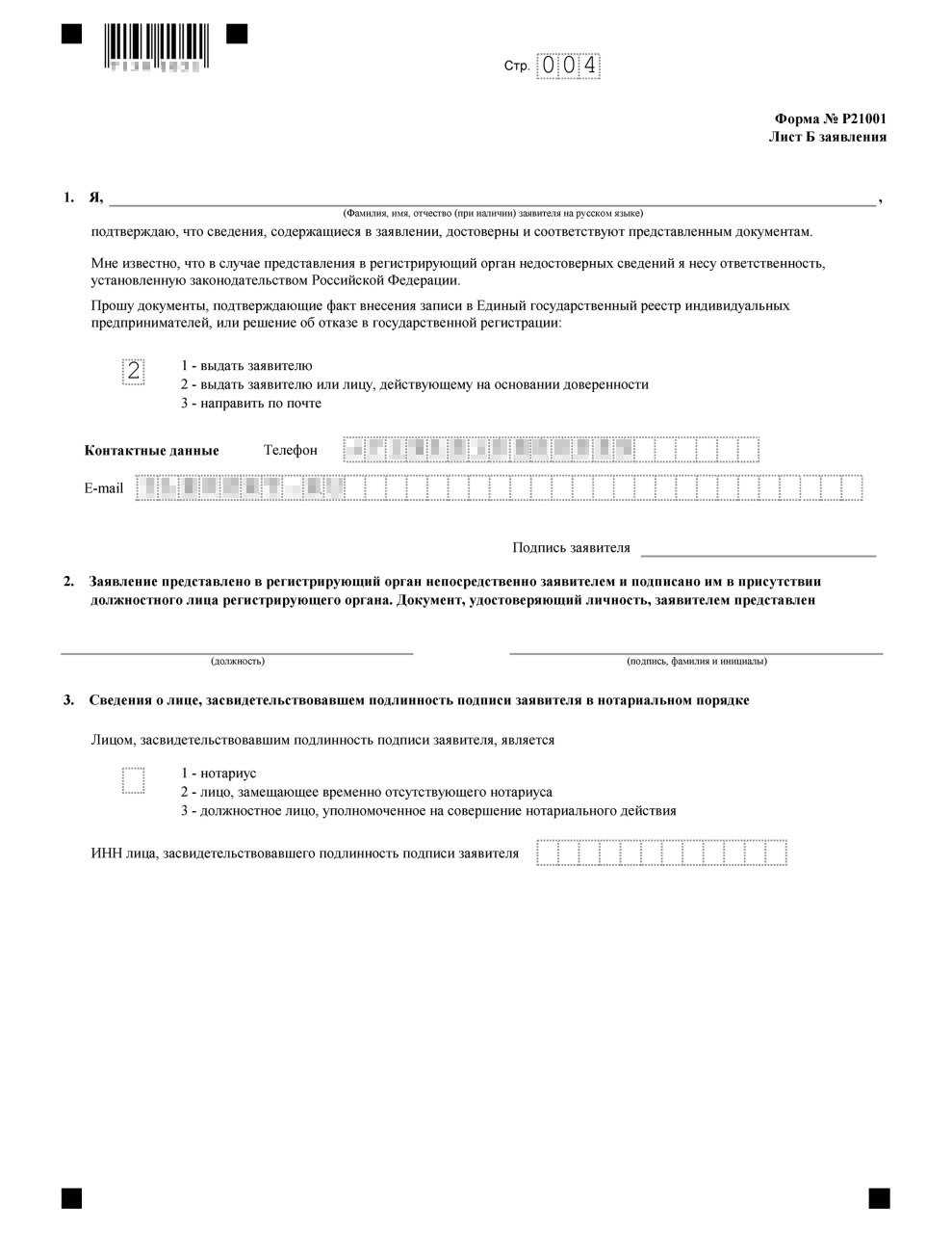 Заявление по форме Р21001 является основным документом, необходимым для регистрации индивидуального предпринимателя (скачать бланк). Подробную инструкцию по заполнению, а также образцы заявления 2020 года вы можете посмотреть на этой странице.