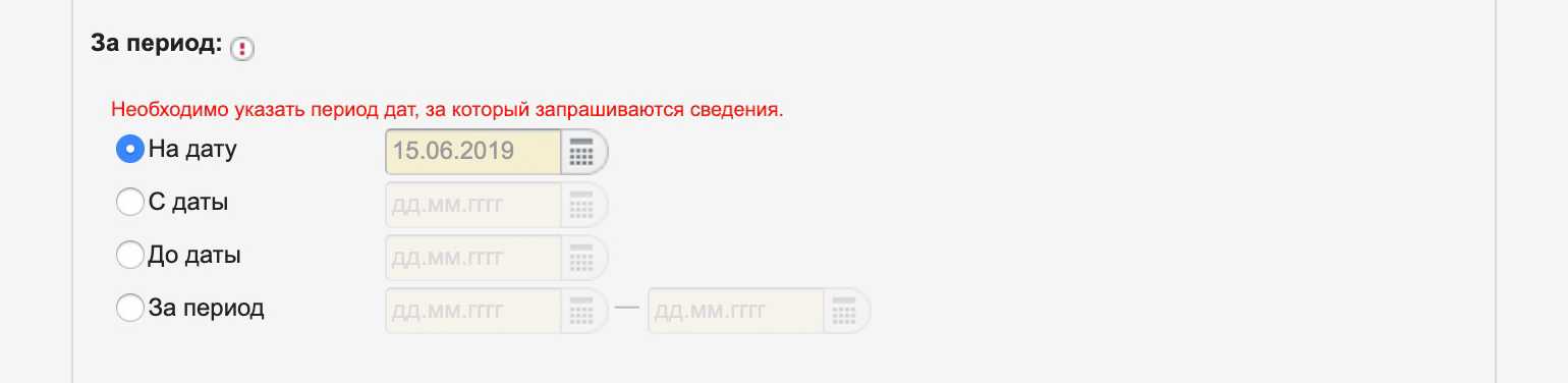 Выбор даты проверки сведений в реестре: конкретное число или период