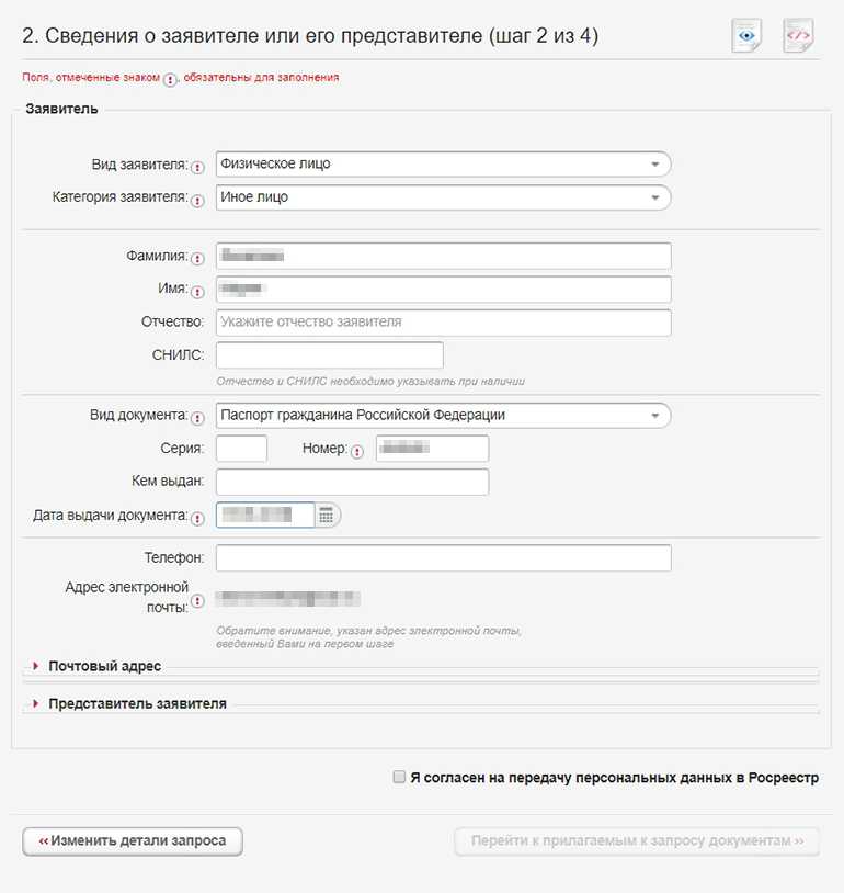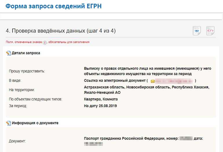 Последний шаг подачи запроса на сайте Росреестра — проверка данных
